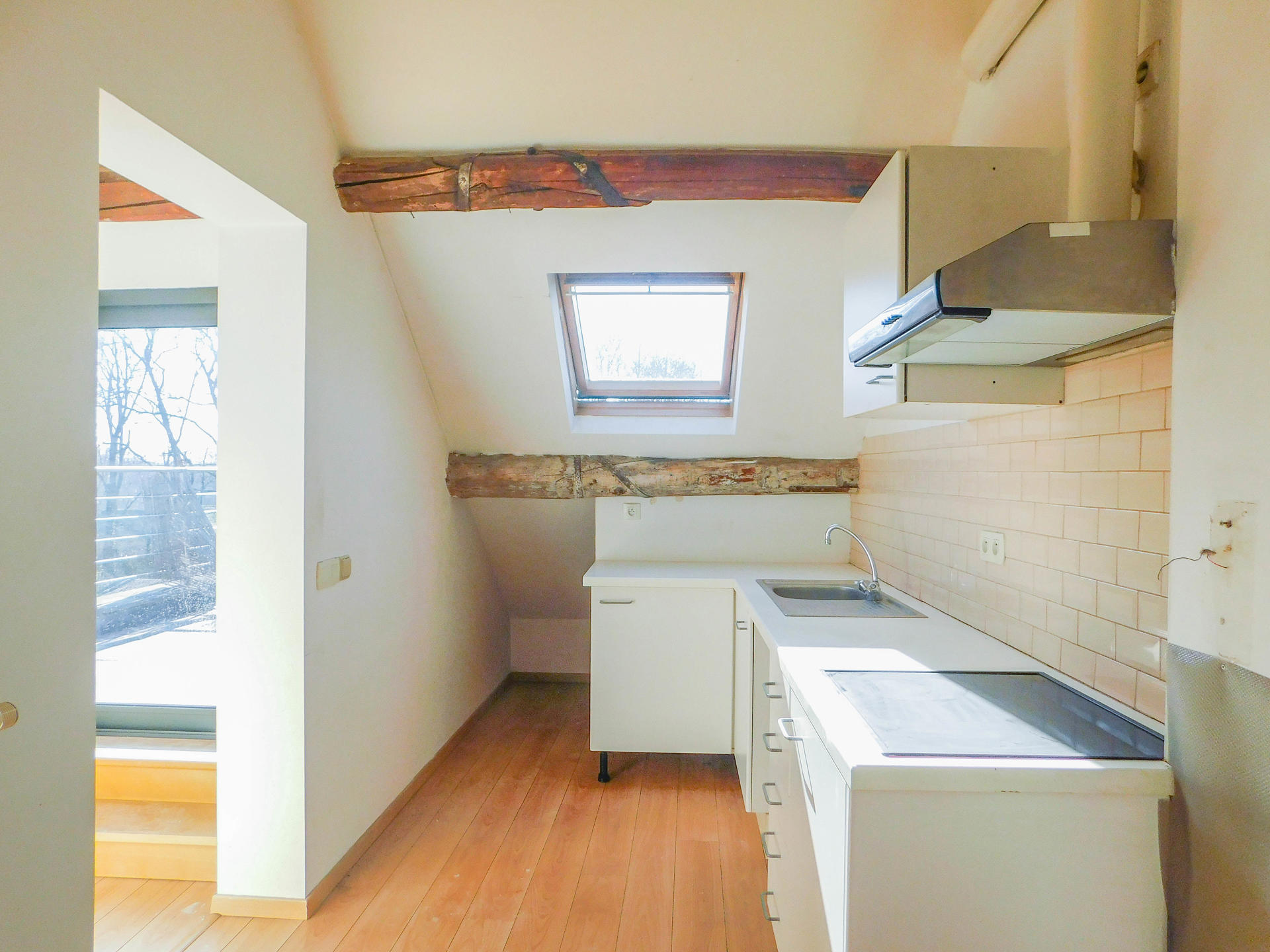 Il est composé d’une belle cuisine de 8 m², d’une salle de douche et d’un séjour de +/- 25 m².