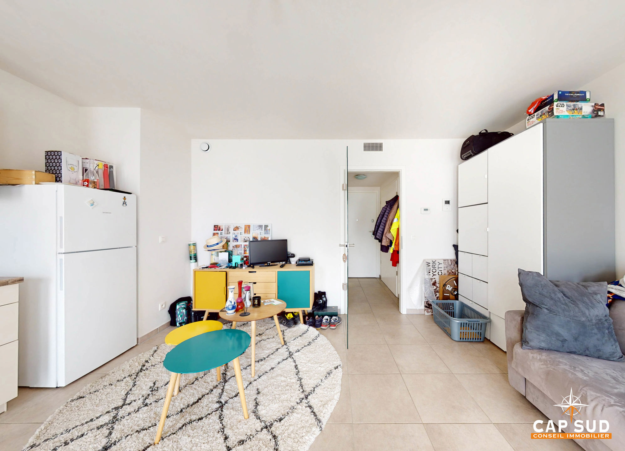 Dès que vous entrez, vous êtes accueilli par une pièce principale qui combine astucieusement un coin salon, une salle à manger et une cuisine, un espace nuit et une salle de douche.