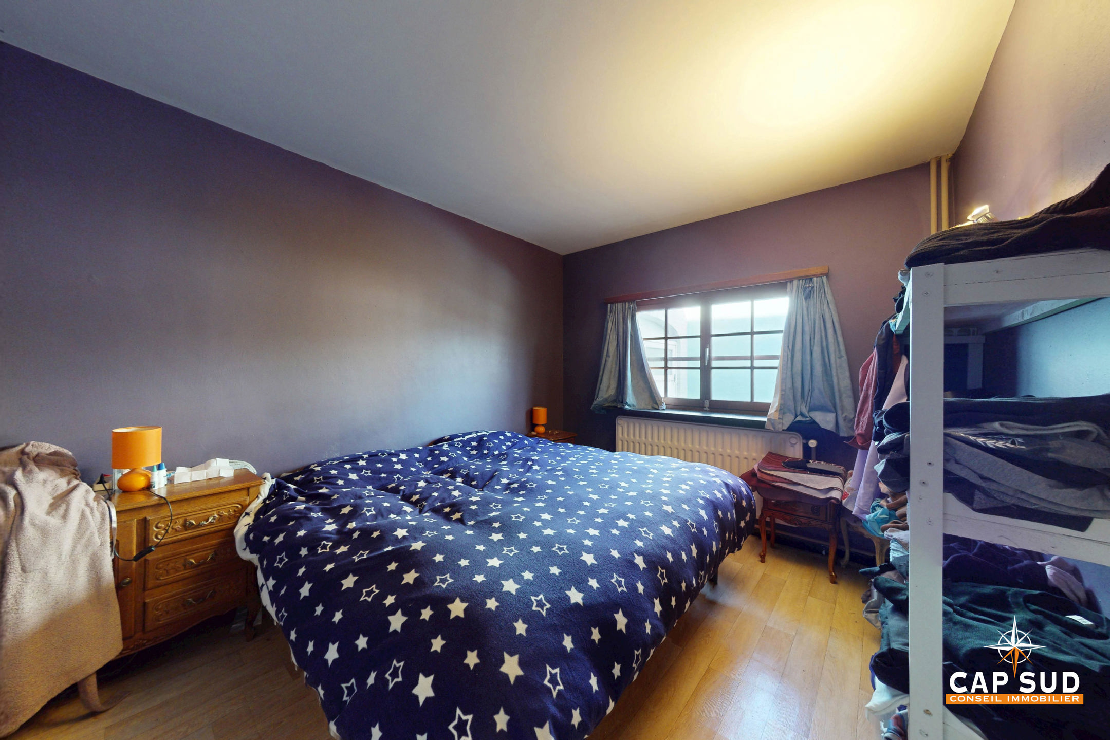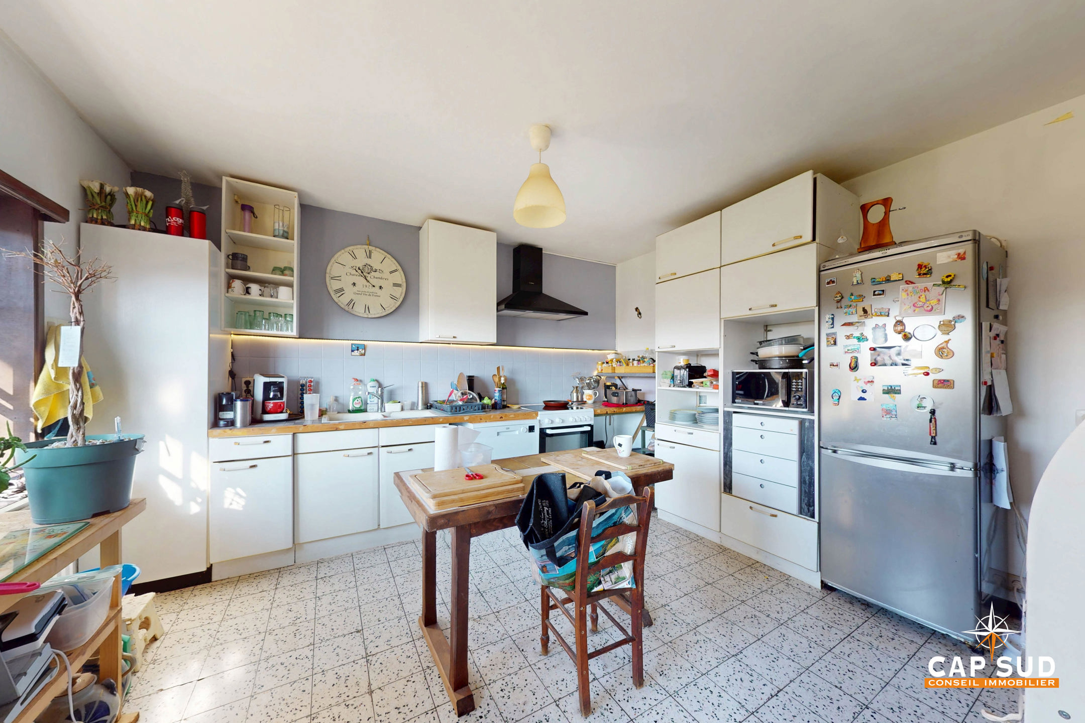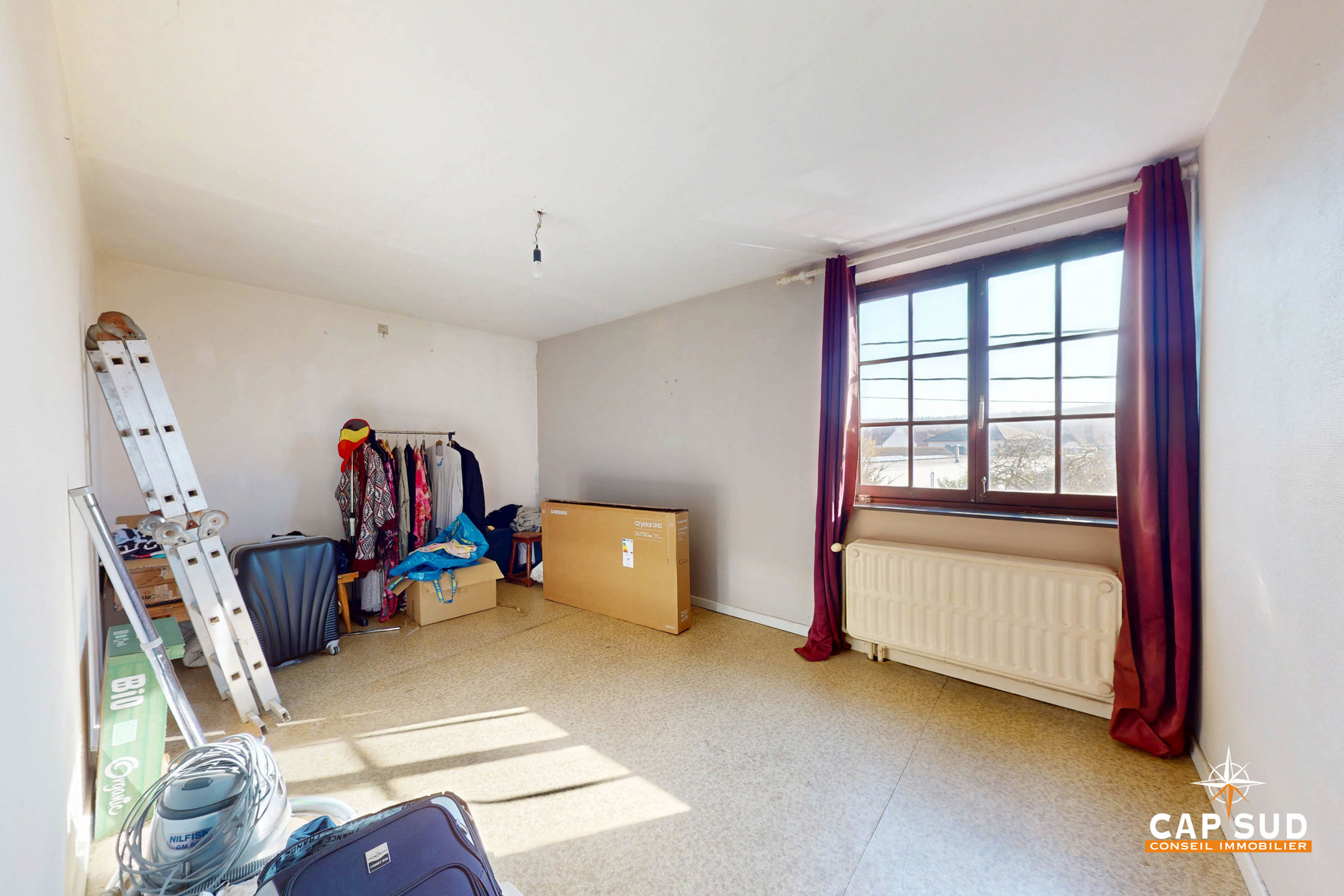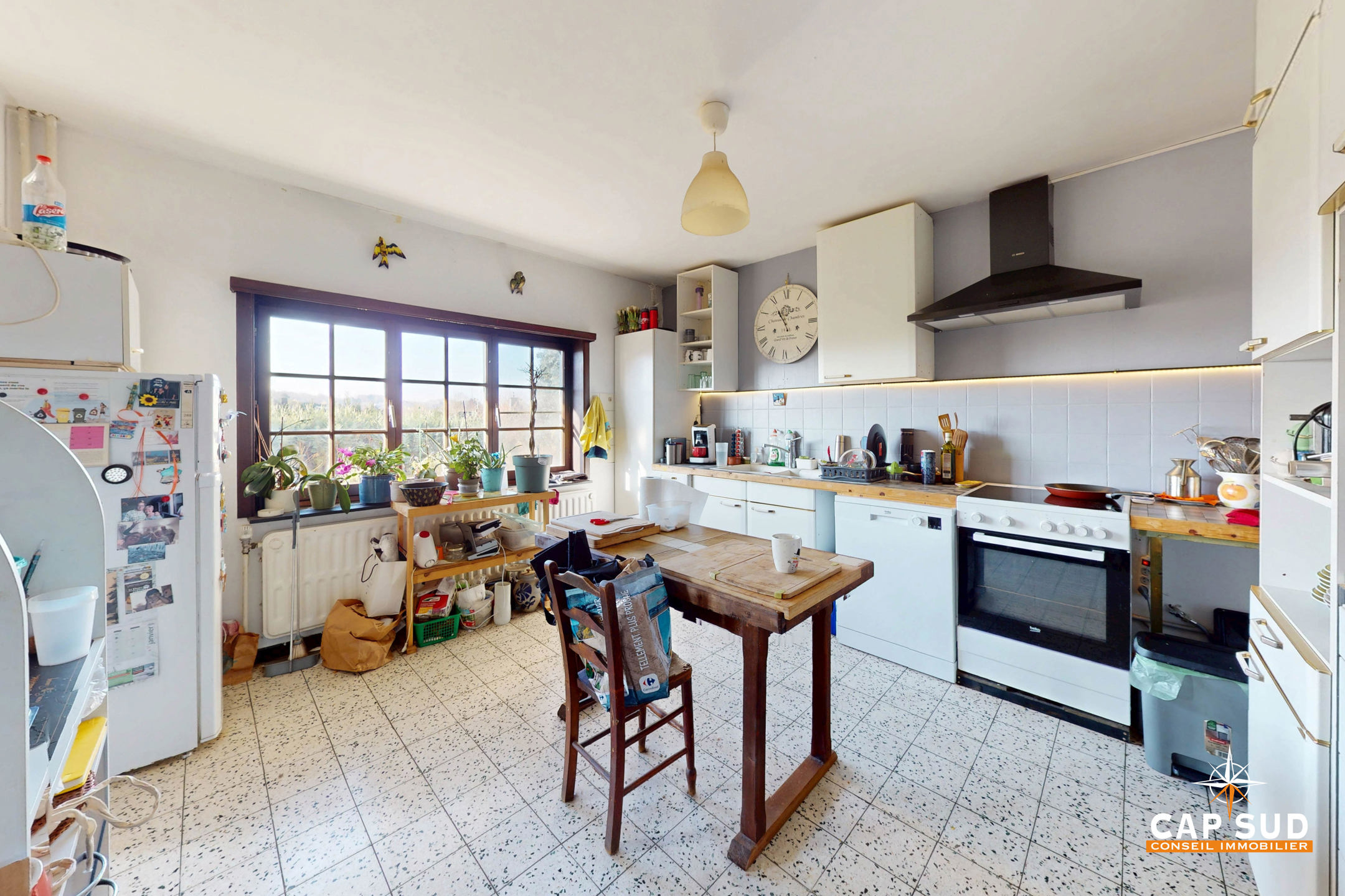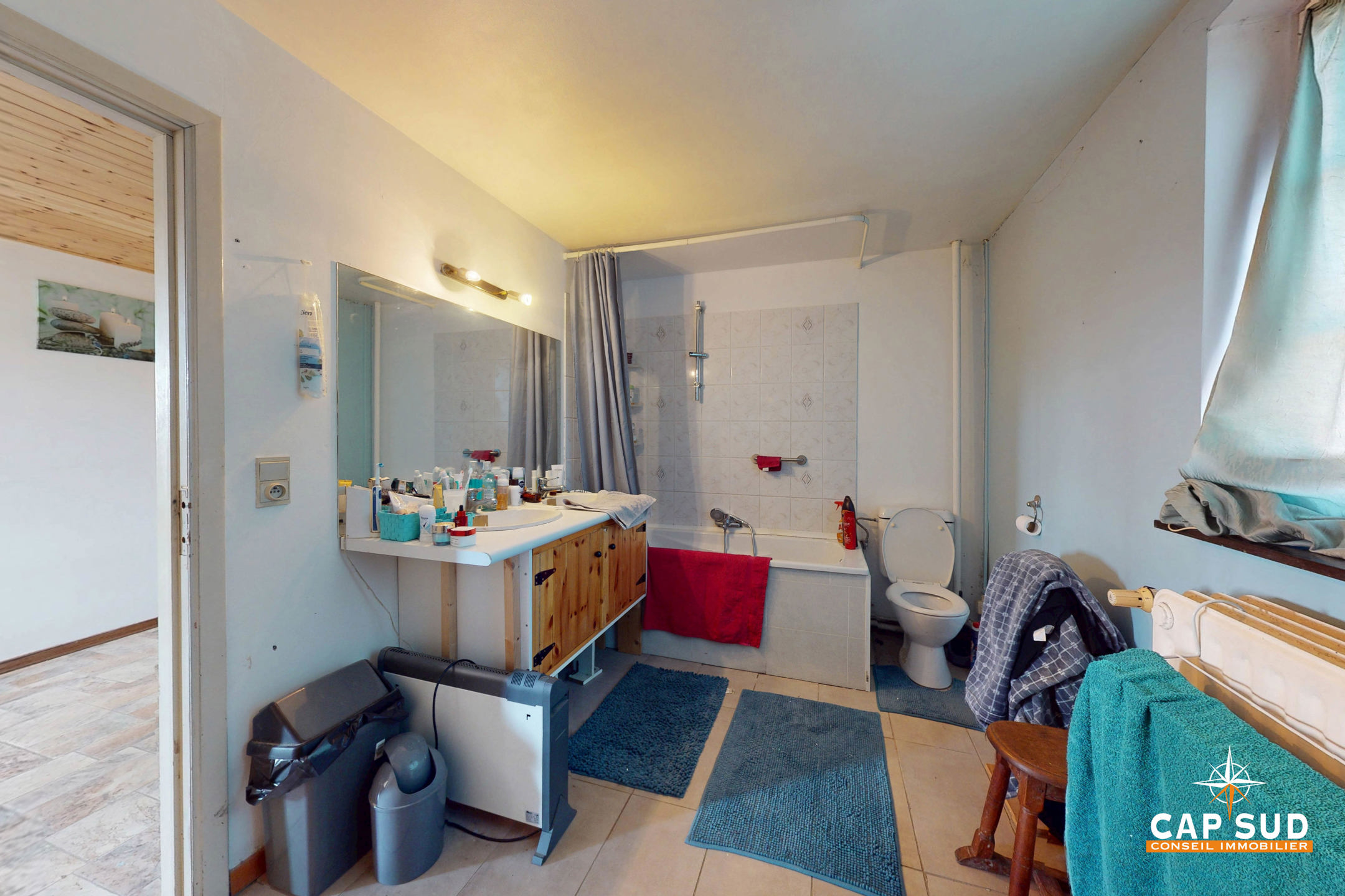Le rez-de-chaussée comprend un séjour lumineux avec un accès direct à une grande terrasse extérieure, un bureau, une cuisine à rénover, une buanderie, un WC séparé. L’étage se compose de 5 chambres et d’une salle de bain.