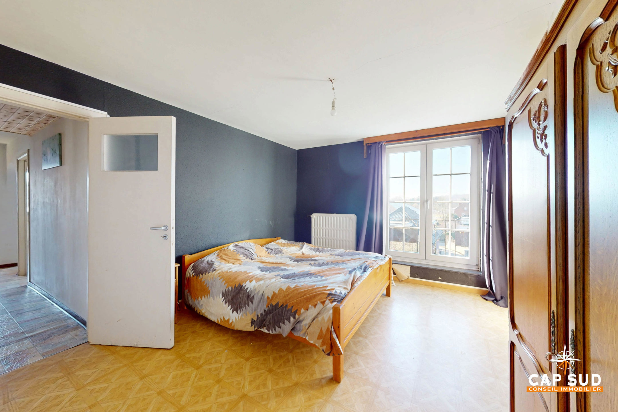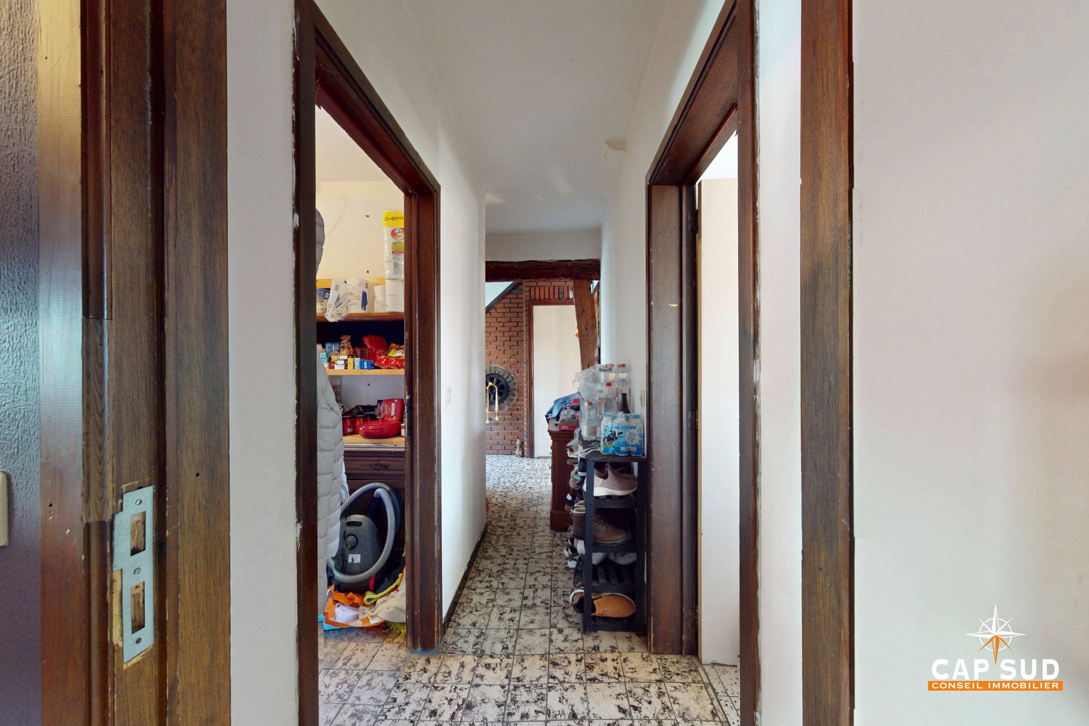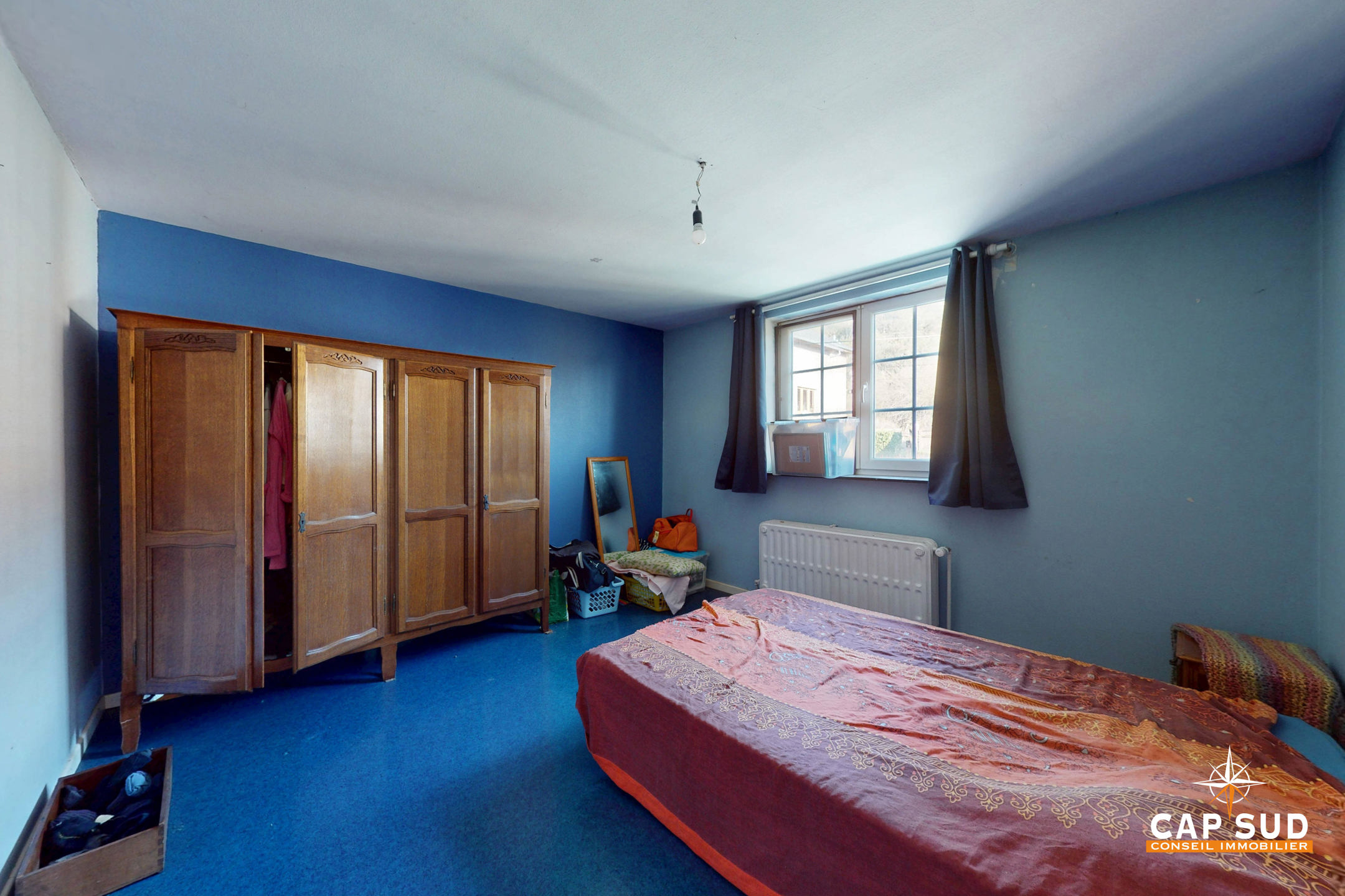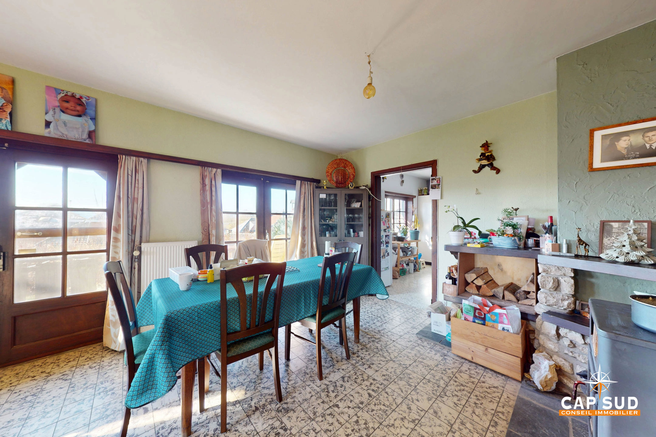 Le rez-de-chaussée comprend un séjour lumineux avec un accès direct à une grande terrasse extérieure, un bureau, une cuisine à rénover, une buanderie, un WC séparé. L’étage se compose de 5 chambres et d’une salle de bain.