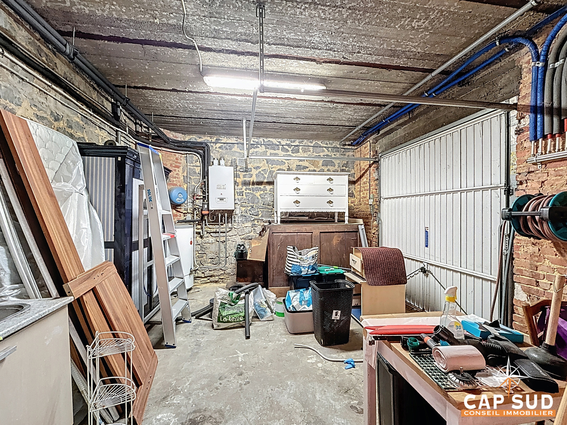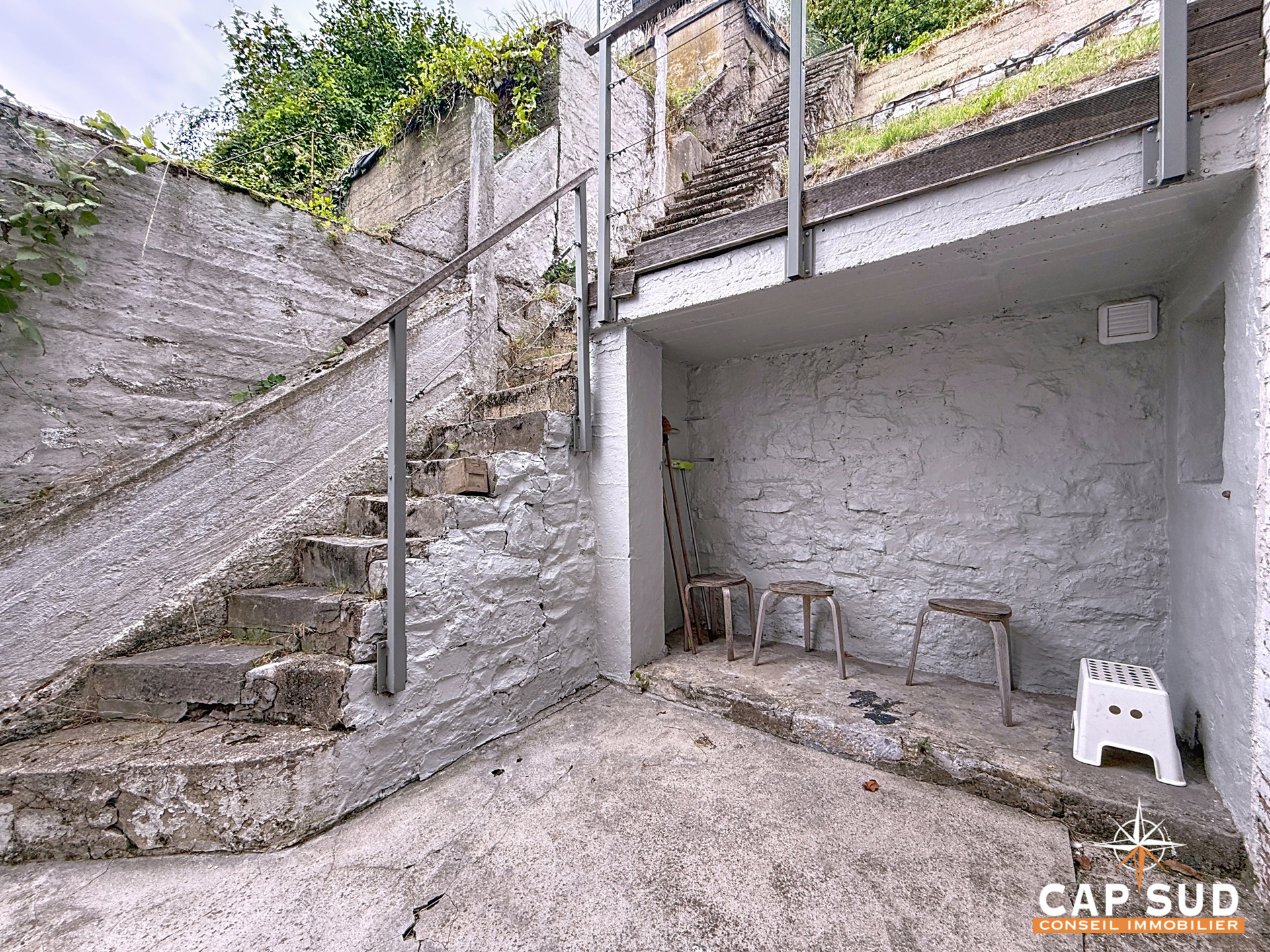 Elle dispose d’un garage, d’un petit local vélo, d’une terrasse avec vue et d’un jardinet en hauteur.