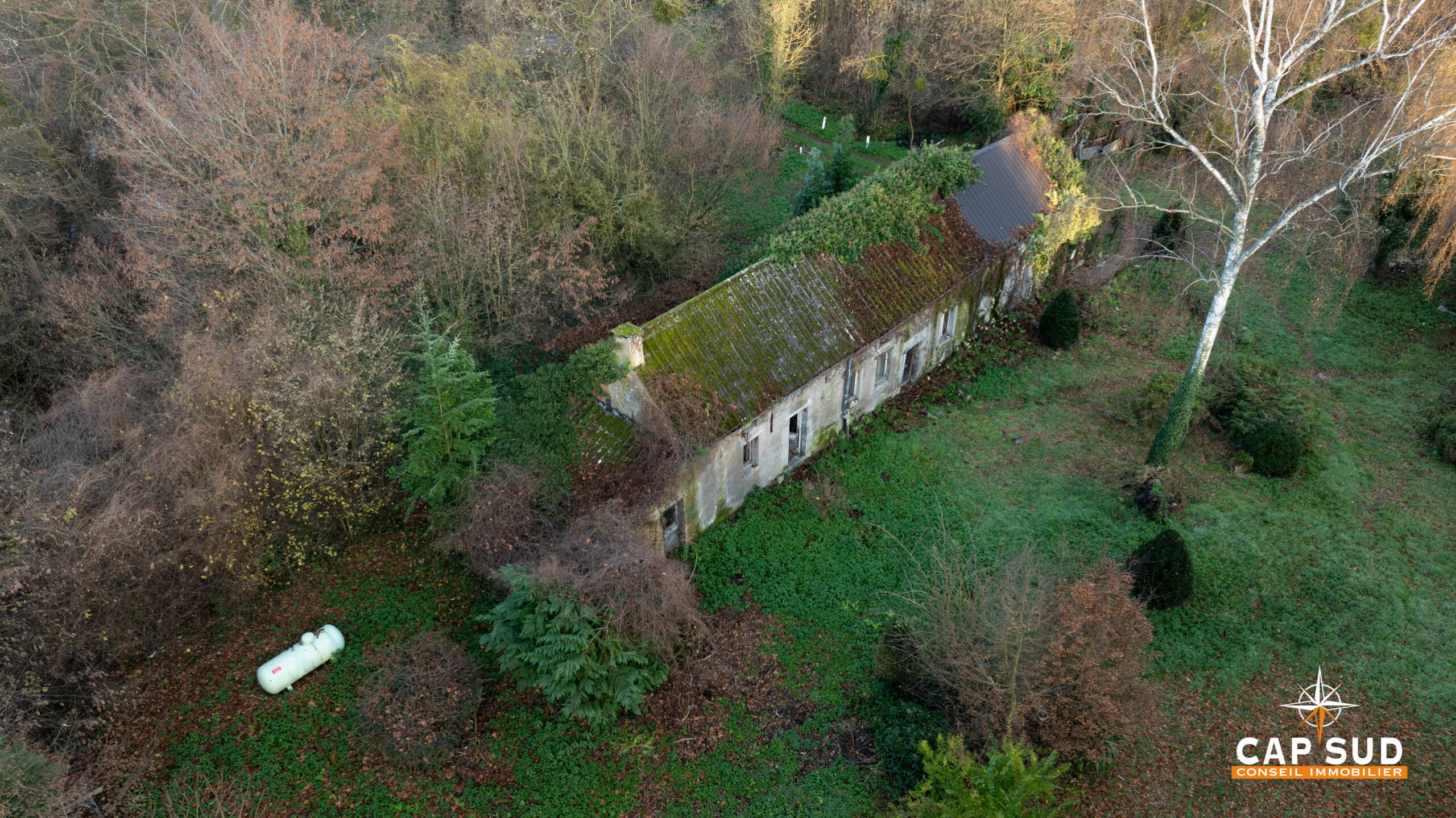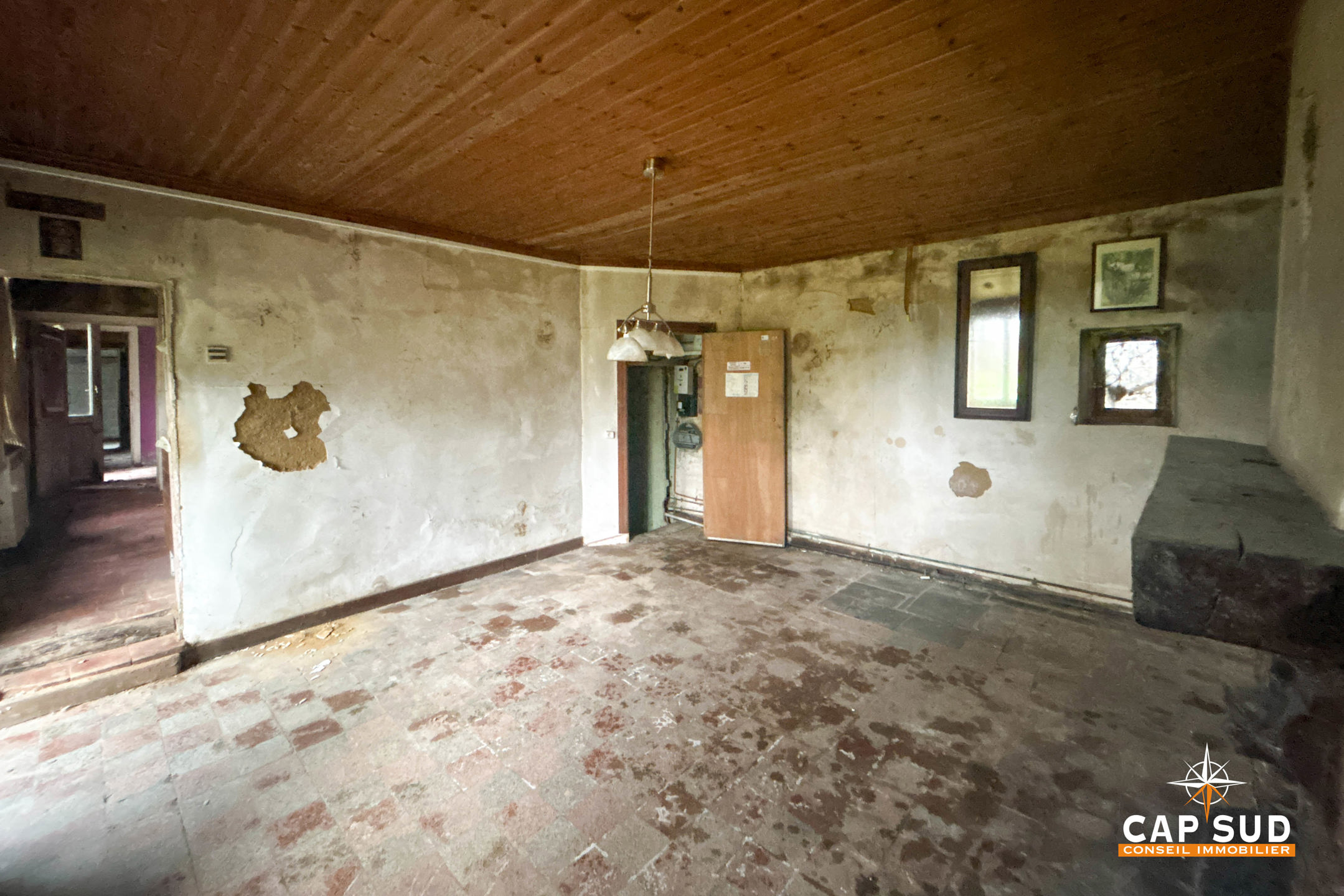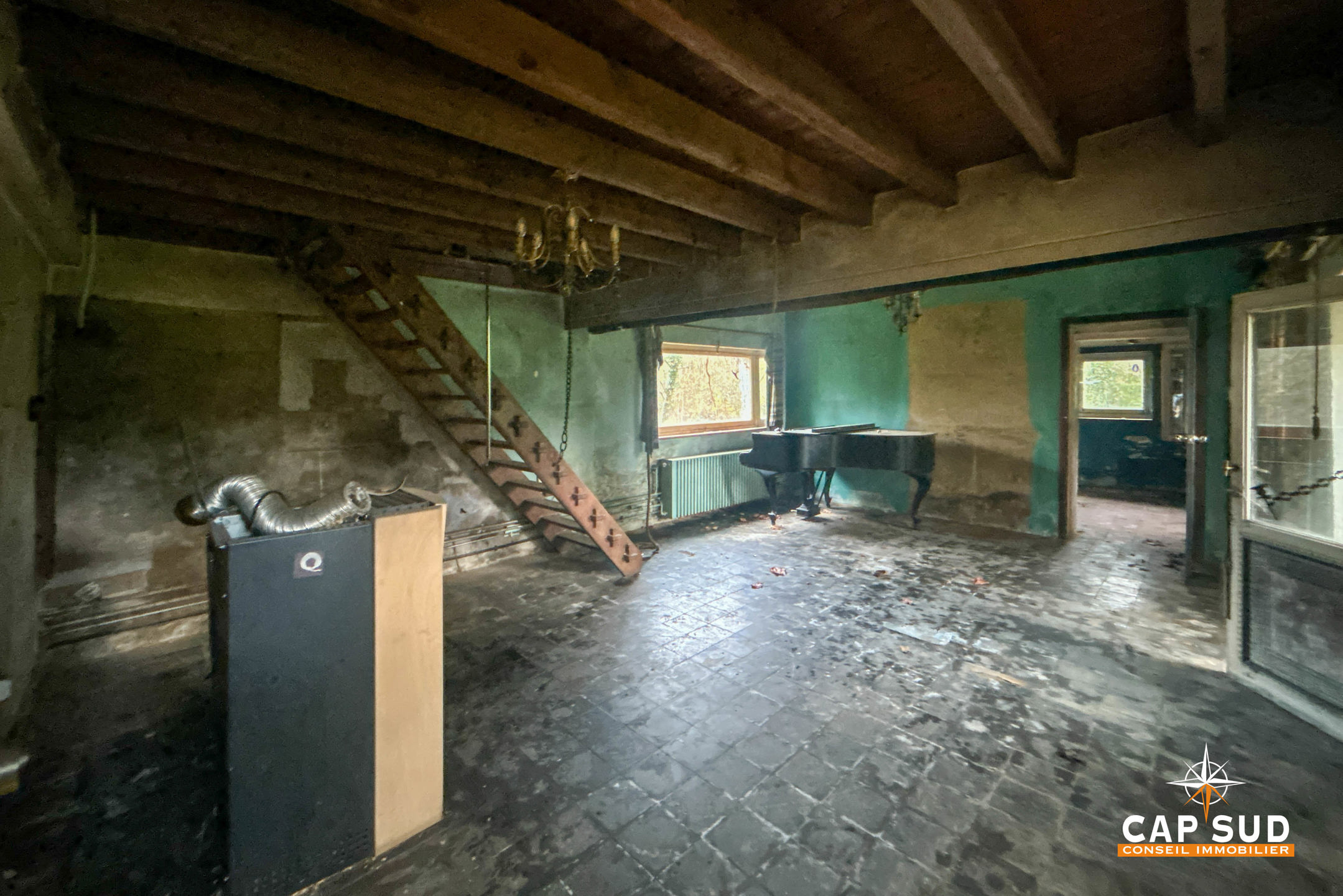 La maison principale présente une emprise au sol de 180 m², offrant un volume remarquable à repenser entièrement. La rénovation totale permet d’imaginer un aménagement sur mesure : vaste maison familiale, intérieur contemporain dans un écrin rural, ou encore projet architectural d’envergure.