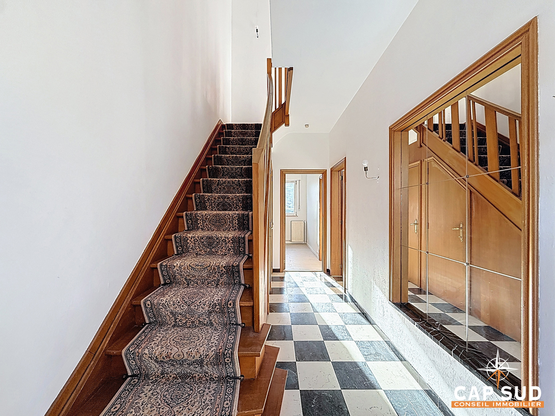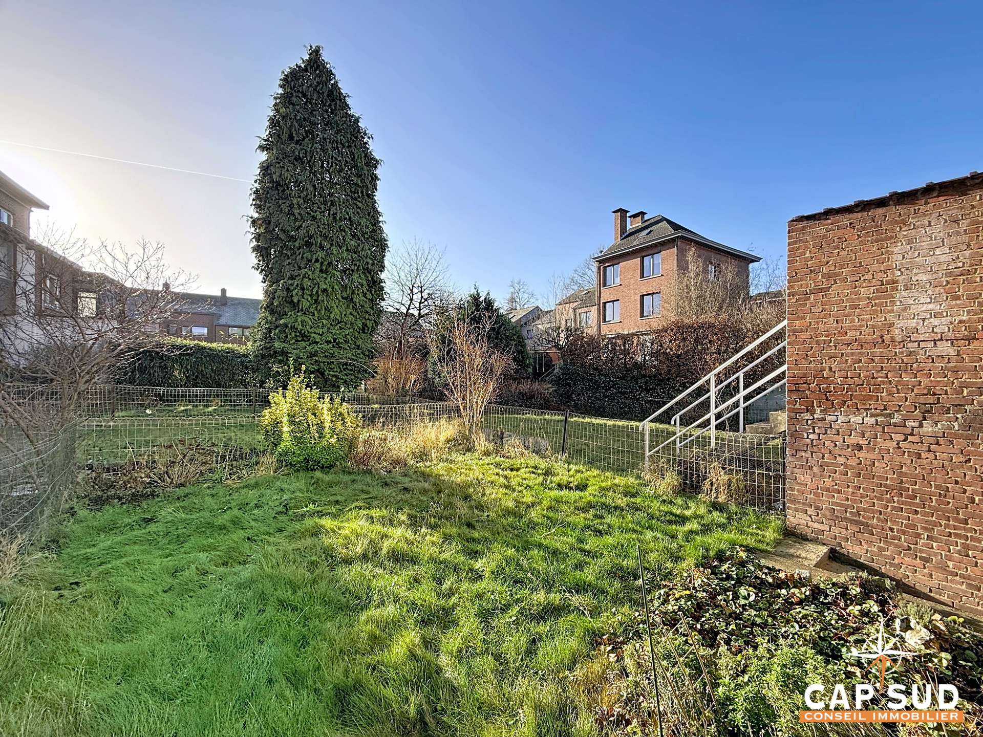 La maison s’ouvre sur un spacieux hall d’entrée avec WC séparé, menant à une cuisine semi-équipée, sans lave-vaisselle mais avec la possibilité d’en installer un, ainsi qu’à un séjour et une salle à manger lumineux donnant accès au balcon et au jardin de ville. Ce dernier, orienté plein sud, permet de profiter pleinement des beaux jours.