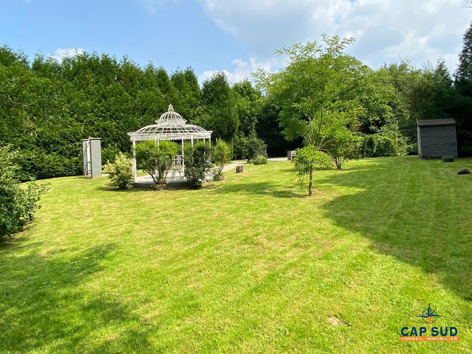 Implantée sur un terrain de plus de 46 ares, cette propriété en excellent état développe une surface utile d’environ 600 m² et séduit par son architecture, ses volumes généreux et son ambiance chaleureuse.